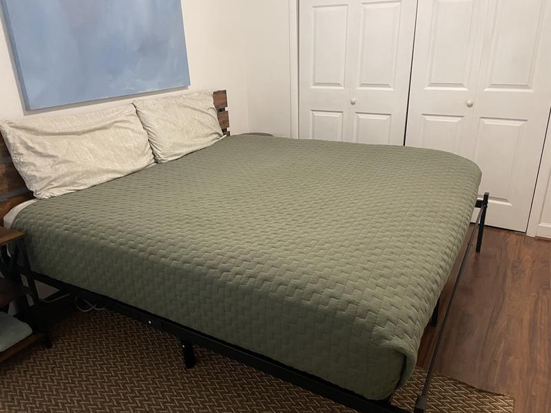 The product is widely praised for its soft, cozy, and lightweight yet warm feel, providing the right amount of warmth for year-round use. The material is described as soft and jersey-like, with a nice texture. The color options, particularly the green and navy, are also well-liked, complementing other bedding well. Many customers have purchased multiple units, indicating high satisfaction and excellent value. However, some customers have reported quality issues, such as the quilt developing holes or not holding up well after washing, and a few found the size slightly too small. Overall, the majority of customers are very pleased with the product's softness, warmth, and aesthetic appeal.