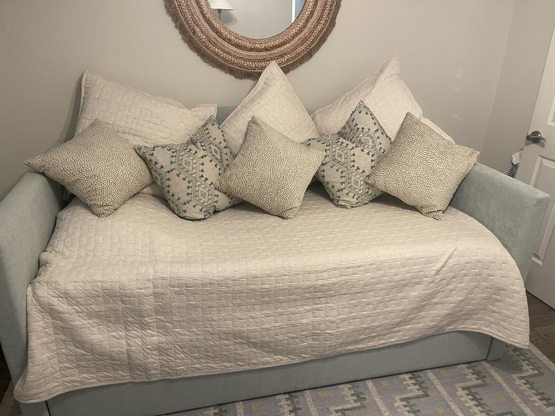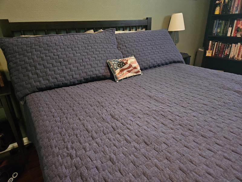 Strike a balance between texture and simplicity with our jersey knit Air Layer Quilt, which is hand-stitched with a fluffy cotton jersey shell and filled with lofty polyfill for an airy, cloudlike weightlessness. Available in a selection of heathered hues that match our jersey knit Air Layer Quilt and Robe.