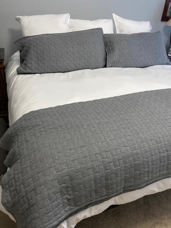 Strike a balance between texture and simplicity with our jersey knit Air Layer Sham, which is hand-stitched with a fluffy cotton jersey shell and filled with lofty polyfill for an airy, cloudlike weightlessness. Available in a selection of heathered hues that match our jersey knit Air Layer Quilt and Robe.