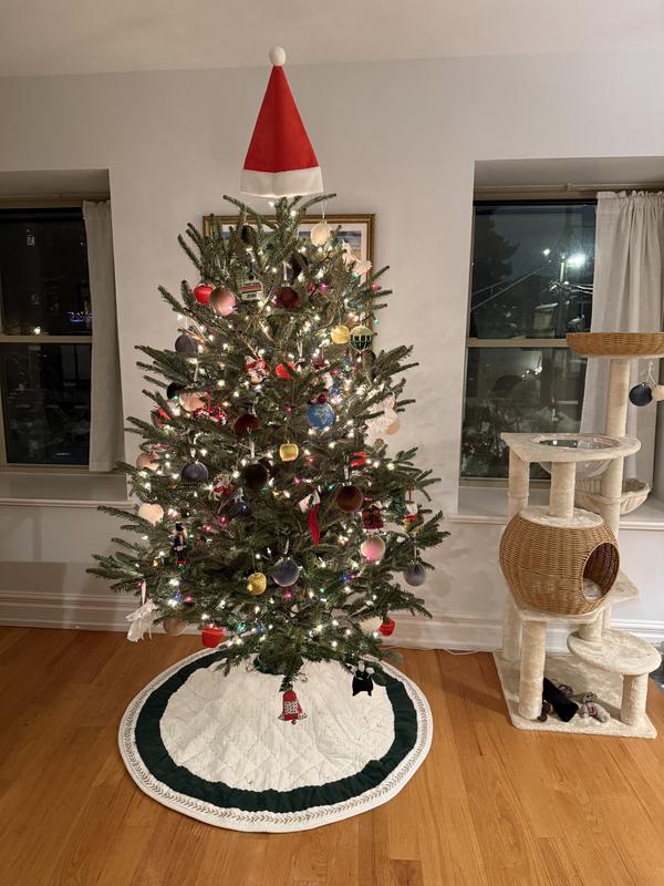 What the well-dressed holiday tree is wearing. Our luxurious Company Essentials™ Artisan Chic Quilted White Velvet Tree Skirt is trimmed with an embroidered gold metallic border, offering an opulent way to complete your seasonal decor. Coordinates with our Artisan Chic stockings and pillow covers (sold separately).