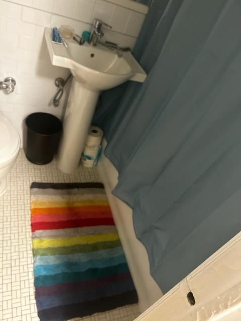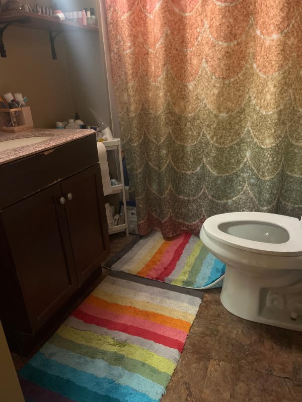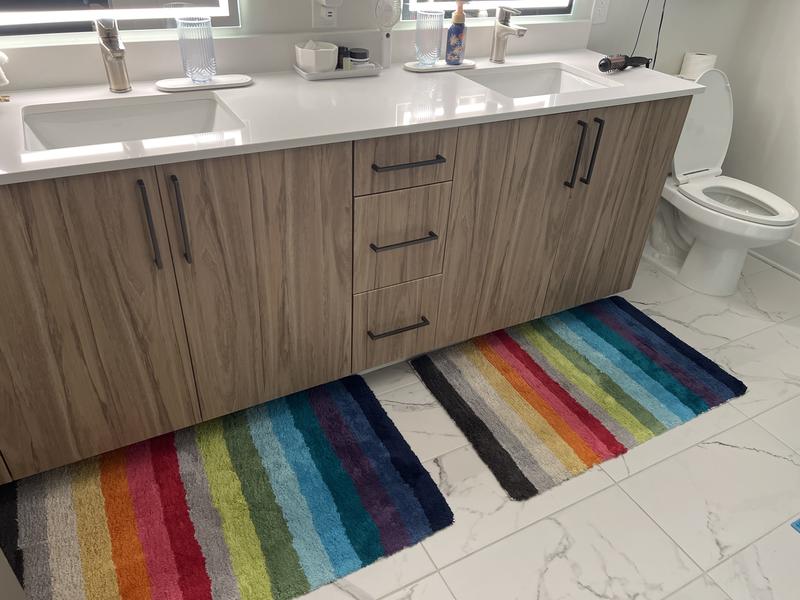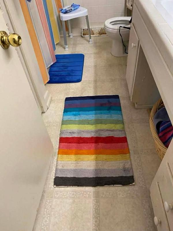 - Multicolor striped bath rug