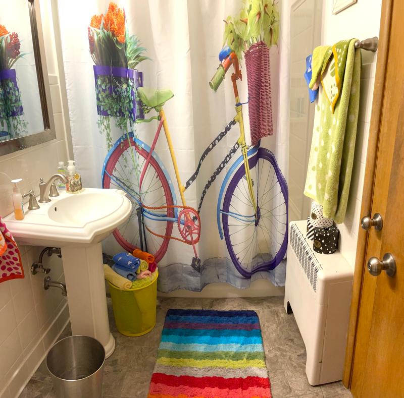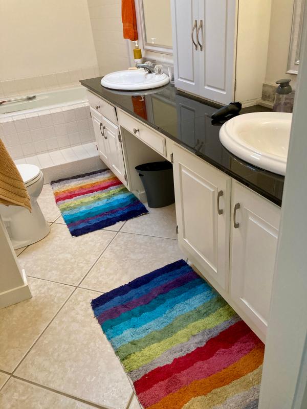 - Multicolor striped bath rug