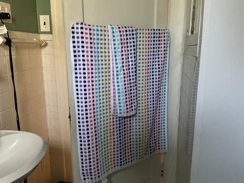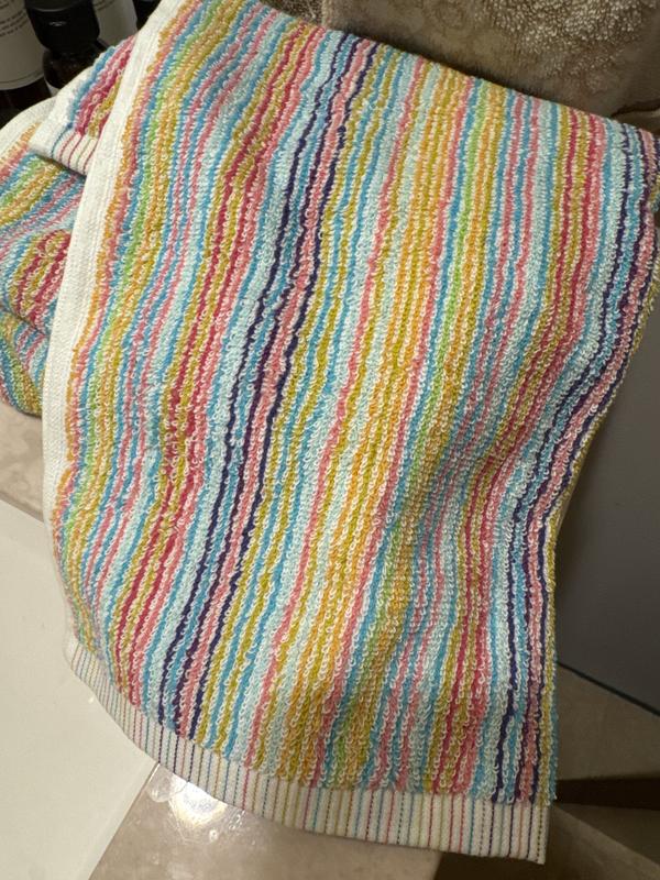 - Complete your bathroom’s look with these colorful pinstripes on our quick drying and absorbent bath towels