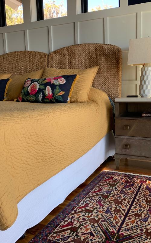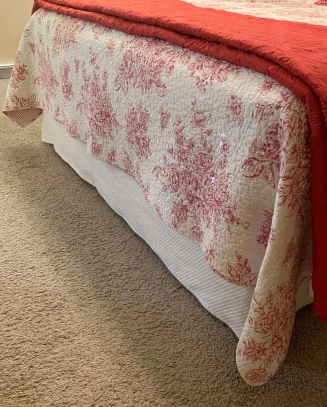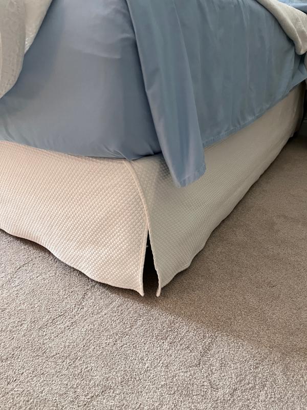 - Textured bed skirt with a mini-diamond matelassé pattern