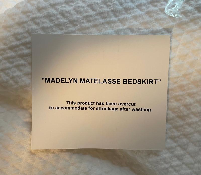 Add the perfect finishing touch to your bed. Our Madelyn Matelassé textured bed skirt stylishly covers your box spring and creates a fluid look from the bedding to the floor which allows you to discreetly utilize the extra storage space under your bed. Woven of Egyptian cotton and assembled in Portugal, this easy-care bed skirt adds luxury and charm to any bedroom.