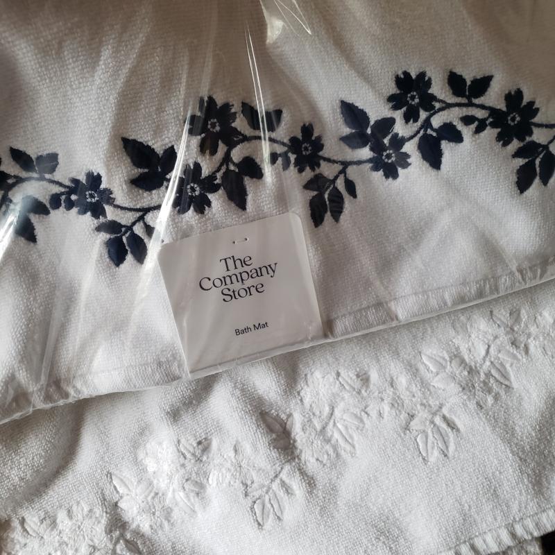 - Embroidered vining florals lend delicate detail to our luxurious bath mat