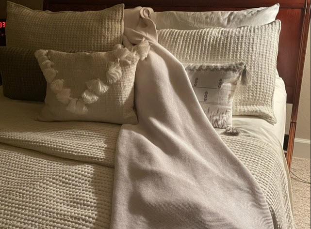 - Knit throw adds rich color and texture to a bed, sofa, or armchair