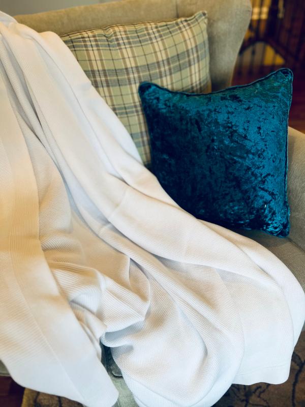 - Knit throw adds rich color and texture to a bed, sofa, or armchair