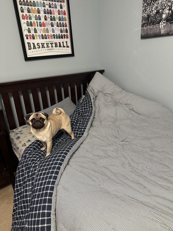 There’s a reason these patterns have been around forever. Sewn of yarn-dyed cotton percale and plumped with 100% recycled fill, our lofty comforter is a constant classic for any bed. Mini-check reverses to itself; windowpane pattern reverses to a coordinating stripe for twice the look.