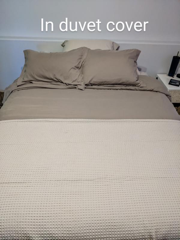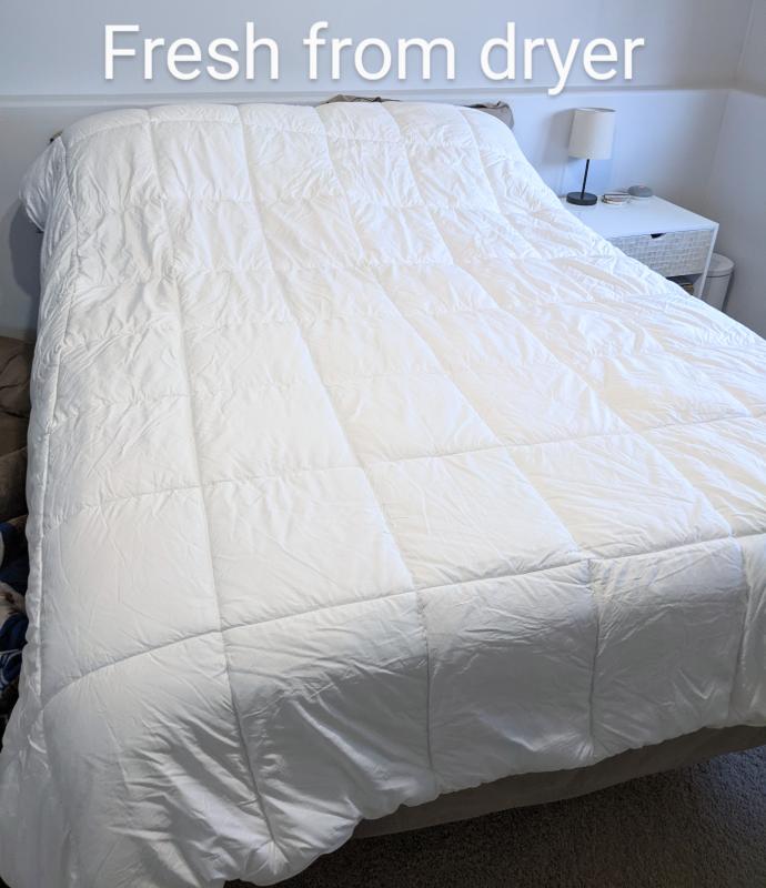 This comforter is highly regarded for its excellent quality, comfort, and warmth. Customers praise its lightweight yet cozy feel, describing it as providing the perfect amount of warmth without being too hot. The eco-friendly materials and construction are also appreciated, with the comforter being made from recycled plastic bottles. It is considered a great alternative to traditional down comforters, especially for those with allergies. The comforter is also praised for its generous size and ability to stay in place on the bed, offering excellent value.