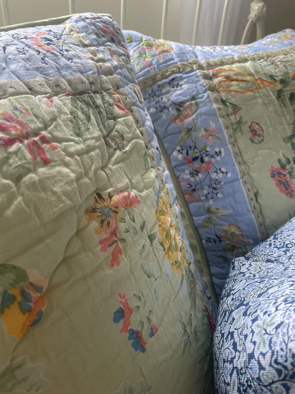 Our signature Company Cotton™ Faelynn Patchwork Quilted Sham captures the beauty of a garden with an eclectic mélange of vintage florals in soft shades of sky blue, periwinkle, pink, fuchsia and celery green. Our artfully pieced sham has the time-weathered beauty of an heirloom. Handcrafted by skilled artisans and washed for lived-in softness, it's as comfortable as it is beautiful.
