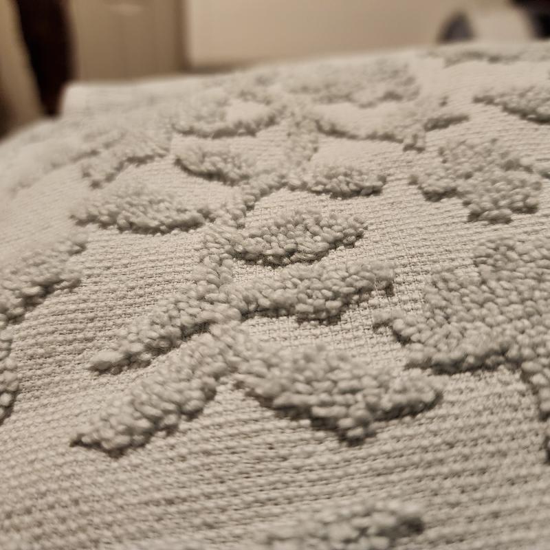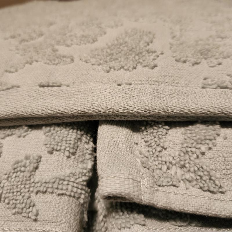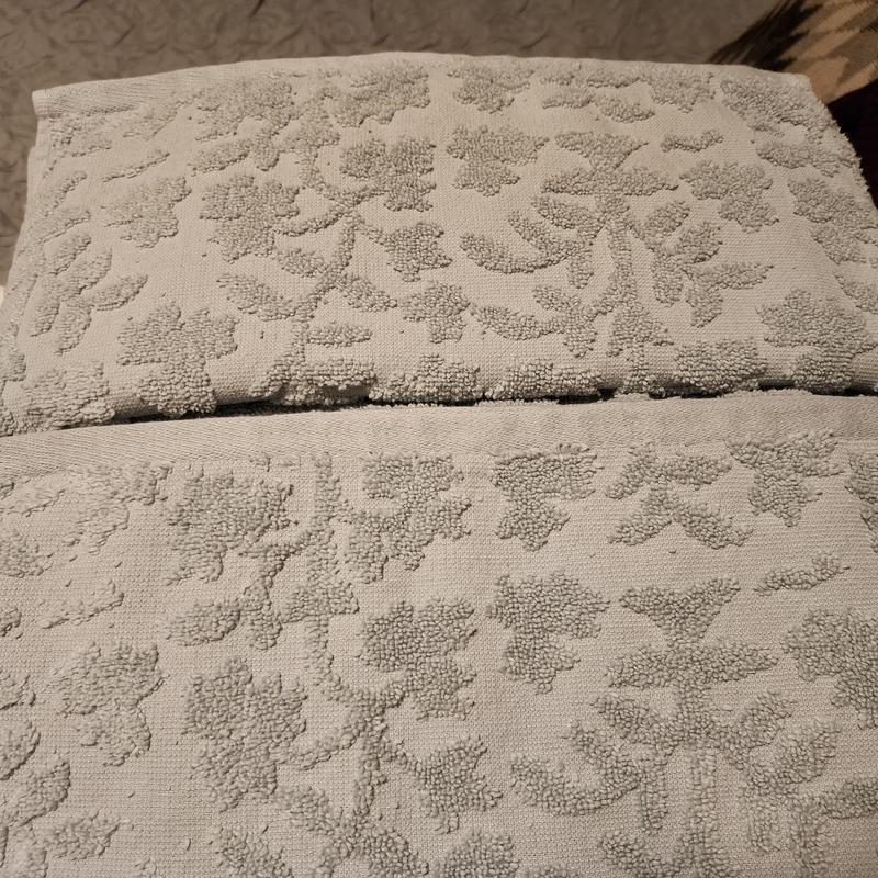 - Sculpted floral designs pattern these richly dimensional towels