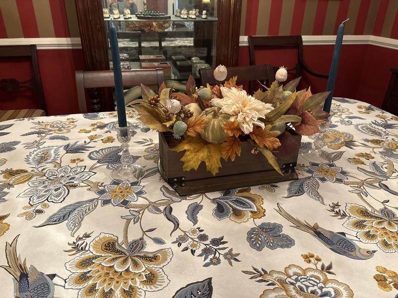 Bring your table to life—whether it’s for a casual brunch or dressed-up dinner. Our Company Cotton™ Garden Floral Tablecloth gets its table-brightening style from a scrolling design in shades of gold, sky blue, chambray, navy, and cream.