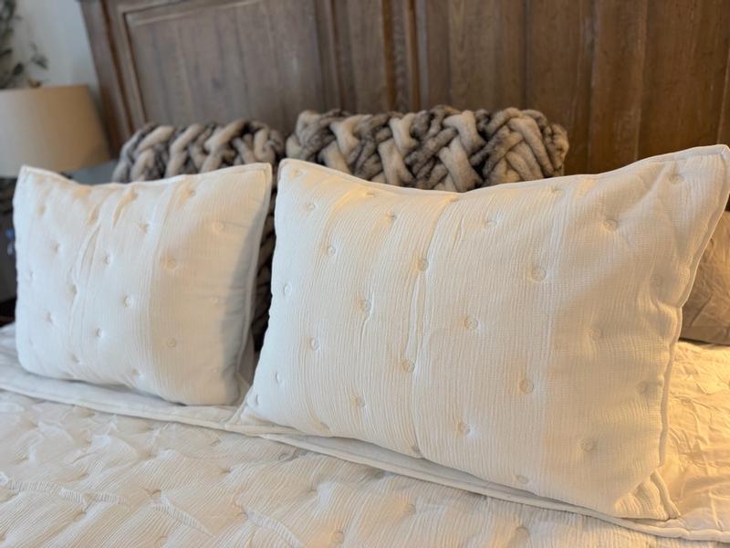 Lofty, light, and white as a cloud, our Company Cotton™ Gauze Deco Quilted Sham is lovely on its own in summer or layered with blankets when temperatures drop. It's plumped with cotton fill and features stitched tufting for textural dimension.