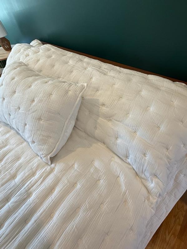 Lofty, light, and white as a cloud, our Company Cotton™ Gauze Deco Quilted Sham is lovely on its own in summer or layered with blankets when temperatures drop. It's plumped with cotton fill and features stitched tufting for textural dimension.