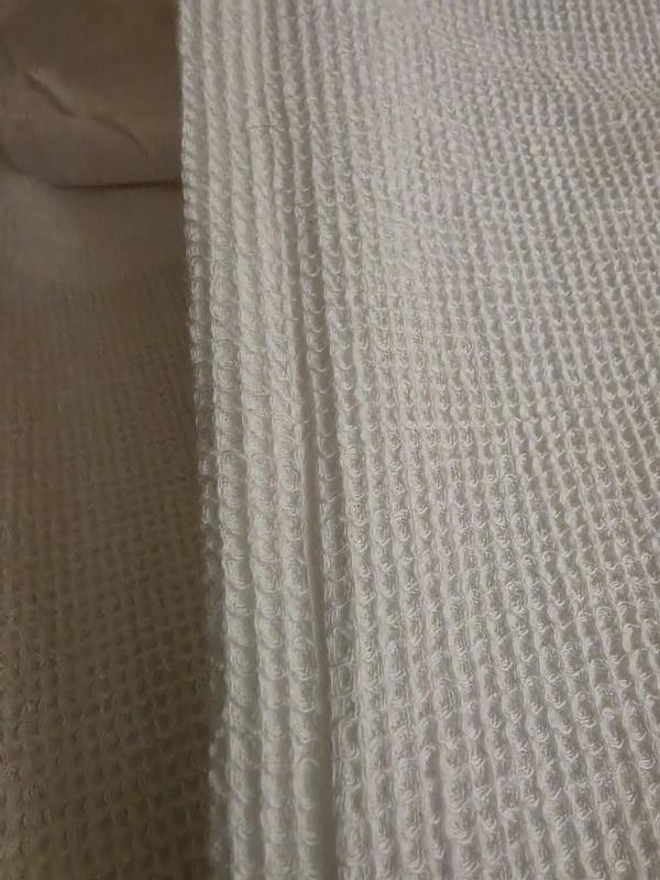 - Mini-waffle weave reverses to 100% cotton percale backing