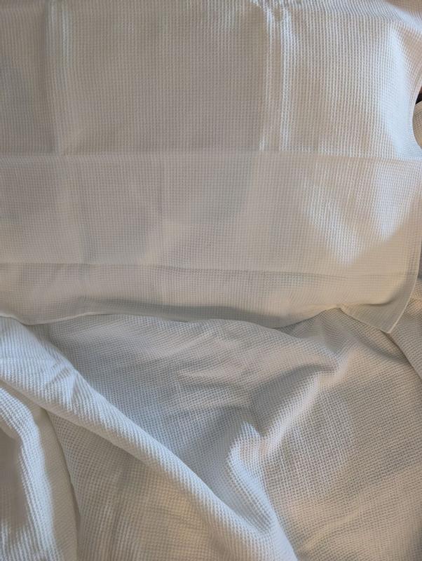 - Mini-waffle weave reverses to 100% cotton percale backing