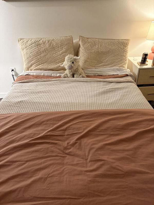 This duvet cover is generally well-received, with customers praising its high quality, beautiful colors, and soft yet crisp feel. The percale fabric is described as cooling and breathable. Some customers note the fabric may feel scratchy initially but softens with washing. The corner ties help keep the duvet in place. While a few had issues with the button closure or the cover being too large, overall the feedback is very positive, and customers seem satisfied with the value and quality.