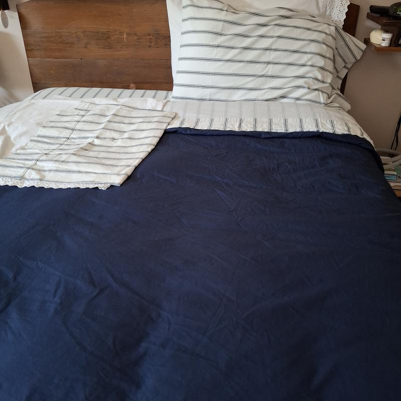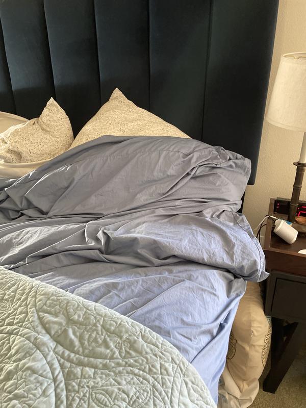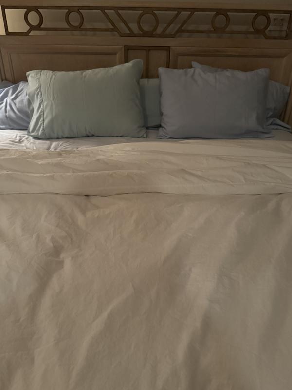 The product is highly praised for its quality, soft and cooling percale fabric, and convenient corner ties. Customers describe it as beautiful and elegant, with a wide range of color options that wash well. While some minor issues with wrinkling and the button closure are noted, the overall feedback is very positive, highlighting the product's comfort and high quality.