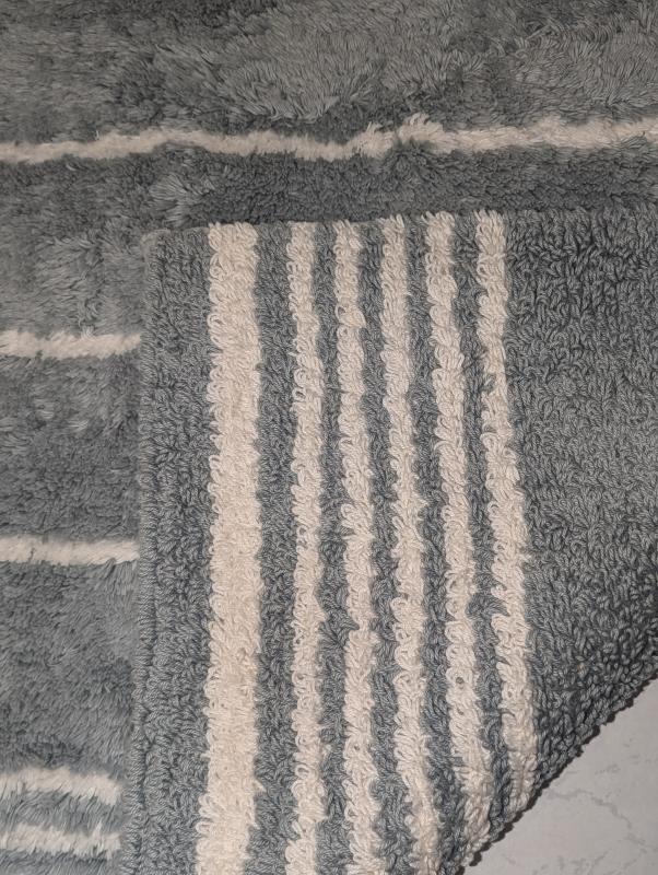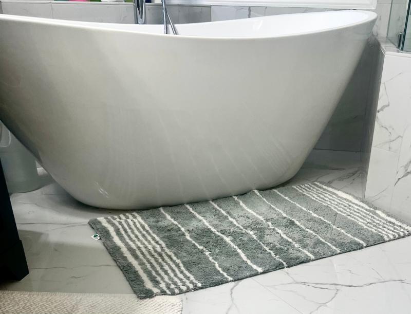 The bath rug is described as soft, plush, and comfortable underfoot. It is also praised for being high-quality, absorbent, and durable, with a stylish design that complements bathroom decor. The large size provides ample space for stepping out of the shower or bath. However, some customers found the rug to be slippery on certain flooring types, and a few were disappointed with how it held up after washing. Additionally, a couple of customers felt the rug was overpriced for the quality.