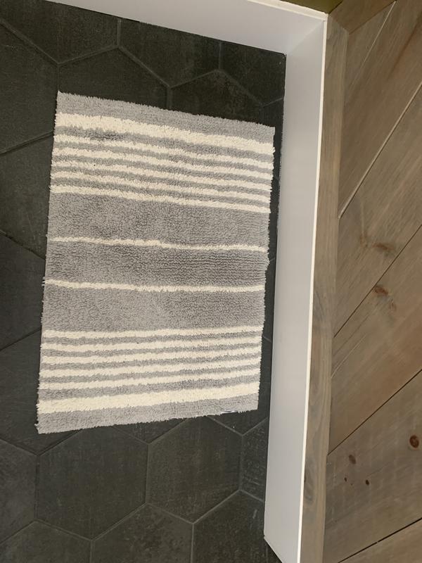 Plush Spa Stripe Bath Rug - Dark Gray, 17 in. x 24 in.