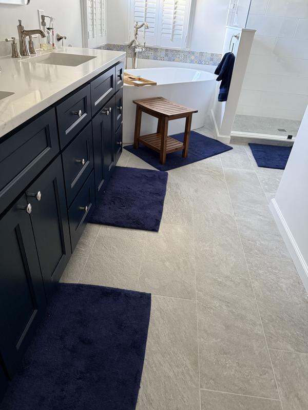 - Soft, absorbent and versatile, our soft bath rug reverses from chunky loops to a thickly tufted pile