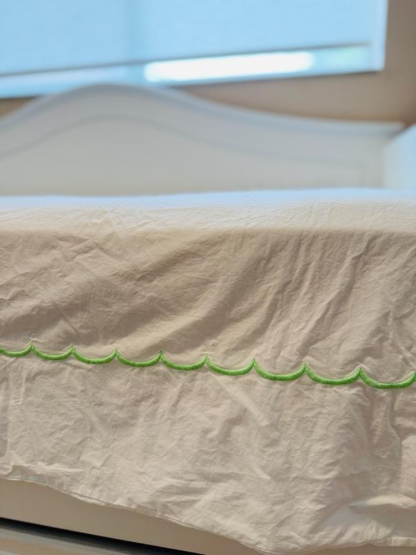 Inspired by classic bedding designs, our Company Cotton™ Embroidered Scallop Percale Duvet Cover features a border of delicate curves and comes in an assortment of beautiful hues. A timeless and versatile layer for any bed, it makes an elegant statement on its own or layered with our patterned bedding designs, sold separately. Our breathable percale bedding collection is an excellent choice for year-round use and hot sleepers.