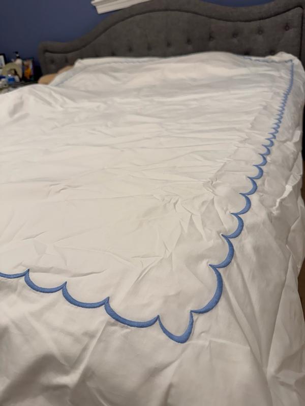 Inspired by classic bedding designs, our Company Cotton™ Embroidered Scallop Percale Duvet Cover features a border of delicate curves and comes in an assortment of beautiful hues. A timeless and versatile layer for any bed, it makes an elegant statement on its own or layered with our patterned bedding designs, sold separately. Our breathable percale bedding collection is an excellent choice for year-round use and hot sleepers.