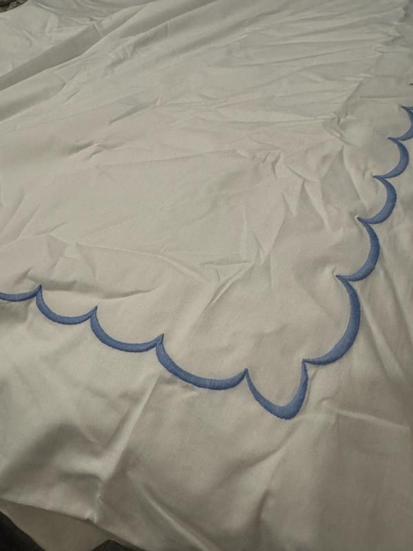 Customers overwhelmingly praise the duvet cover for its premium 100% cotton percale fabric, elegant scallop detailing, and hotel-like crispness. Most highlight the breathable, cool material that softens beautifully after washing while maintaining its signature crisp texture. The timeless design with neutral tones and embroidery seamlessly complements varied decor, instantly elevating bedroom aesthetics. Reviewers consistently note excellent durability, secure button closure, and functional corner ties. A few mention wrinkles after drying or duvet shifting inside, though most consider these minor trade-offs for the quality and comfort delivered.