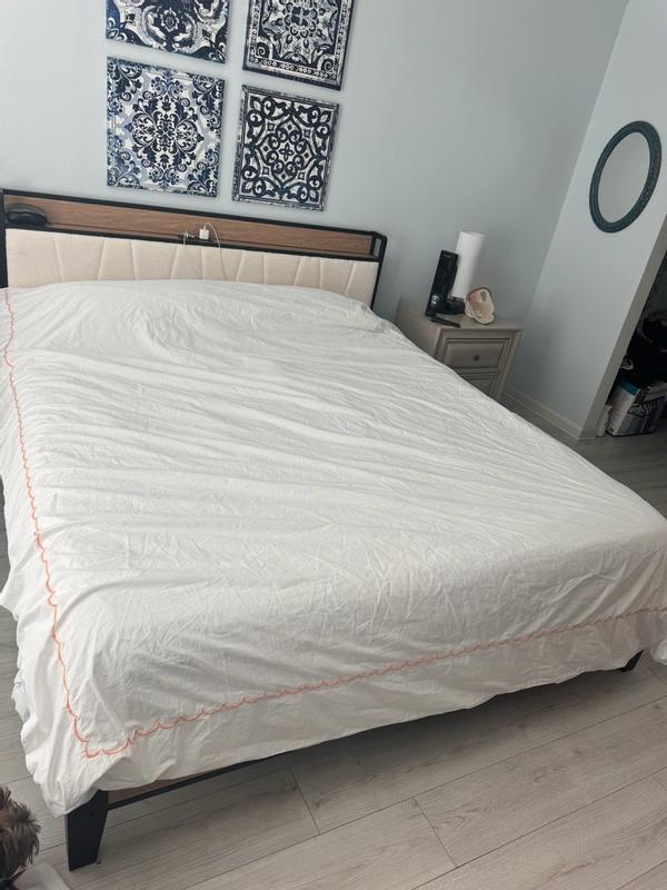 Customers overwhelmingly praise the crisp percale cotton fabric for its cool, breathable sensation and luxurious feel that softens slightly after washing while retaining signature crispness. The scallop detailing and minimalist embroidery create an elegant, hotel-inspired aesthetic that complements any decor. Reviewers consistently highlight durability through repeated washing, with stitching and fabric maintaining integrity without pilling or fading. Most find the corner ties and button closure thoughtfully constructed. A few note the cover arrives stiff and wrinkles easily, requiring ironing, though most view this as typical percale behavior. Overall, customers consider it exceptional value and plan to repurchase.