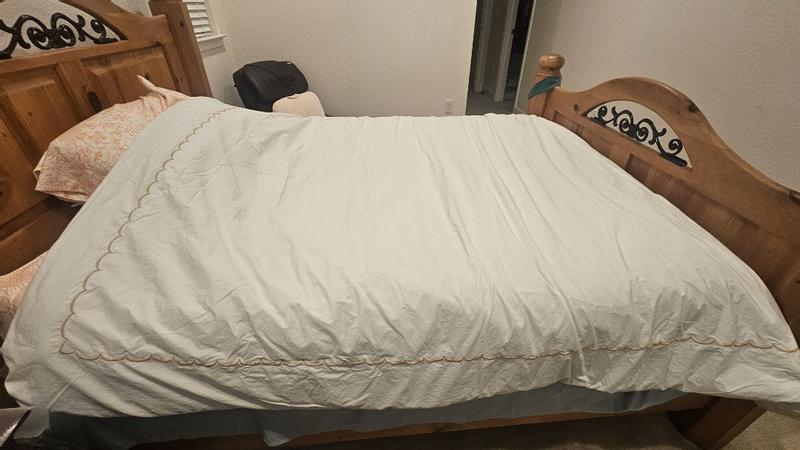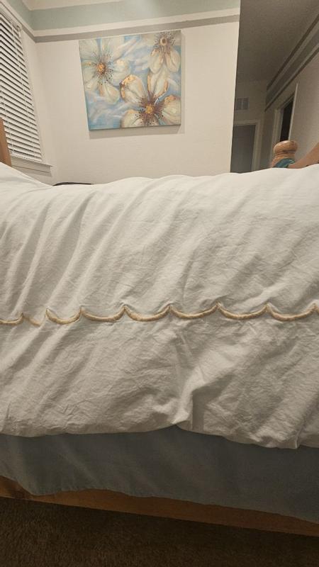 Customers overwhelmingly praise the duvet cover for its crisp percale cotton feel, delivering a cool, breathable, hotel-like sleep experience that softens beautifully after washing. The elegant scallop detailing and minimalist embroidery create a refined, timeless aesthetic that complements any decor. Most highlight exceptional durability, secure seams, and functional corner ties that keep the duvet in place. A few note the fabric wrinkles easily and mention the button closure feels awkward, while one found it thinner than expected. Overall, reviewers consider it a worthwhile investment in quality bedding.