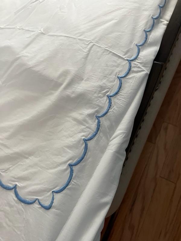 Inspired by classic bedding designs, our Company Cotton™ Embroidered Scallop Percale Duvet Cover features a border of delicate curves and comes in an assortment of beautiful hues. A timeless and versatile layer for any bed, it makes an elegant statement on its own or layered with our patterned bedding designs, sold separately. Our breathable percale bedding collection is an excellent choice for year-round use and hot sleepers.