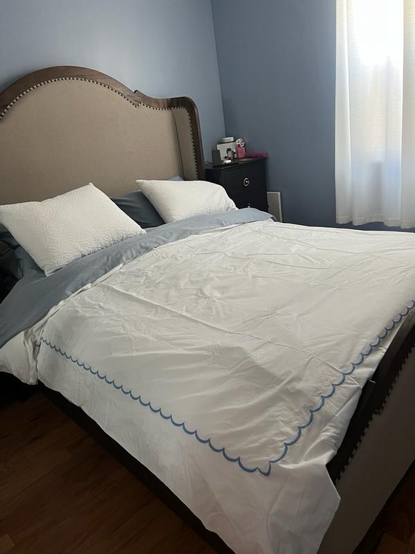 Embroidered Scallop Classic Cool Cotton Percale Duvet Cover - White, Twin/Twin XL