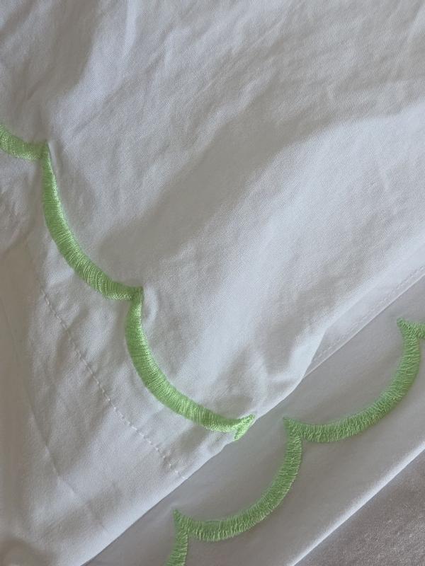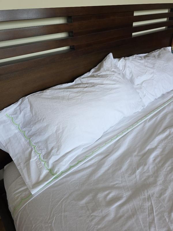 Inspired by classic bedding designs, our Company Cotton™ Embroidered Scallop Percale Sheet Set features a border of delicate curves and comes in an assortment of beautiful hues. A timeless and versatile layer for any bed, it makes an elegant statement on its own or layered with our patterned bedding designs, sold separately. Our breathable percale bedding collection is an excellent choice for year-round use and hot sleepers.