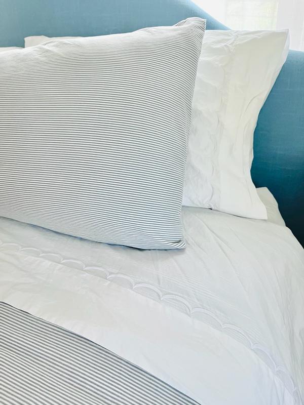 Inspired by classic bedding designs, our Company Cotton™ Embroidered Scallop Percale Sheet Set features a border of delicate curves and comes in an assortment of beautiful hues. A timeless and versatile layer for any bed, it makes an elegant statement on its own or layered with our patterned bedding designs, sold separately. Our breathable percale bedding collection is an excellent choice for year-round use and hot sleepers.