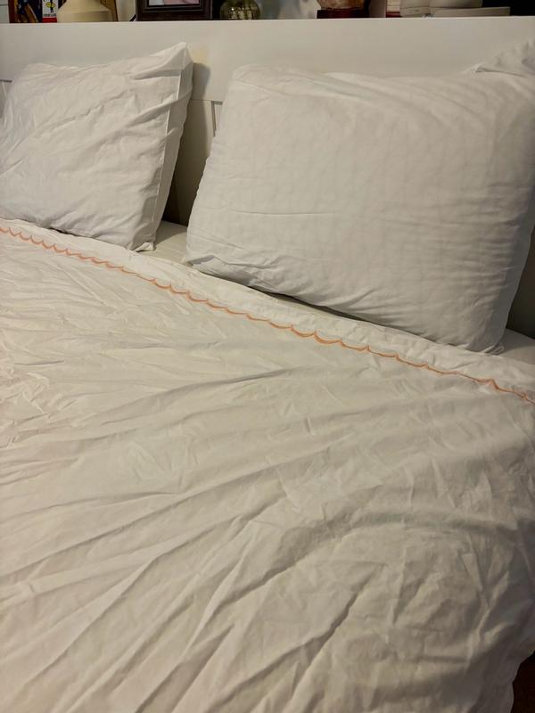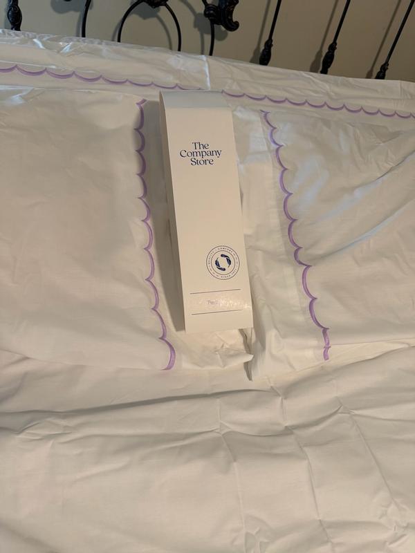 Inspired by classic bedding designs, our Company Cotton™ Embroidered Scallop Percale Sheet Set features a border of delicate curves and comes in an assortment of beautiful hues. A timeless and versatile layer for any bed, it makes an elegant statement on its own or layered with our patterned bedding designs, sold separately. Our breathable percale bedding collection is an excellent choice for year-round use and hot sleepers.