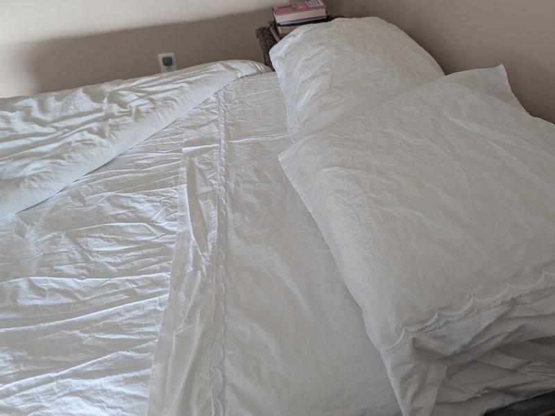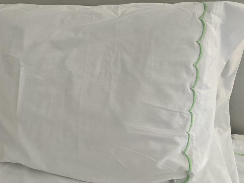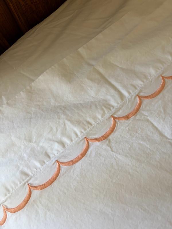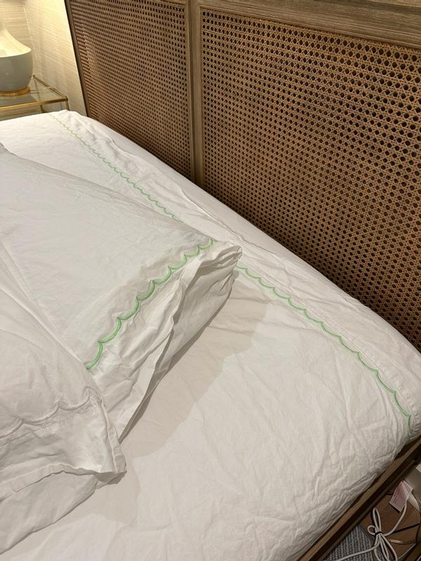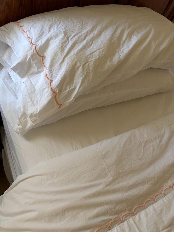 Inspired by classic bedding designs, our Company Cotton™ Embroidered Scallop Percale Sheet Set features a border of delicate curves and comes in an assortment of beautiful hues. A timeless and versatile layer for any bed, it makes an elegant statement on its own or layered with our patterned bedding designs, sold separately. Our breathable percale bedding collection is an excellent choice for year-round use and hot sleepers.