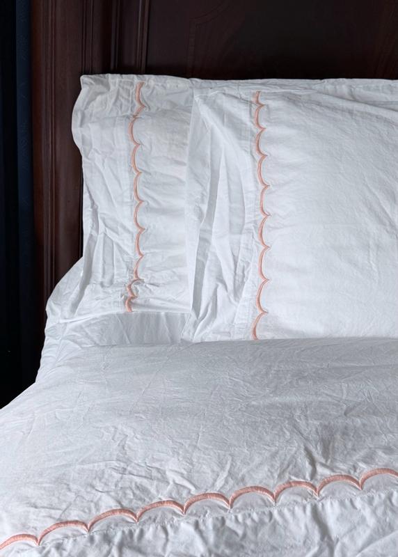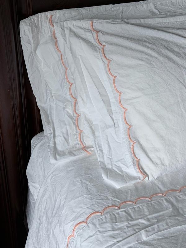 Inspired by classic bedding designs, our Company Cotton™ Embroidered Scallop Percale Sheet Set features a border of delicate curves and comes in an assortment of beautiful hues. A timeless and versatile layer for any bed, it makes an elegant statement on its own or layered with our patterned bedding designs, sold separately. Our breathable percale bedding collection is an excellent choice for year-round use and hot sleepers.