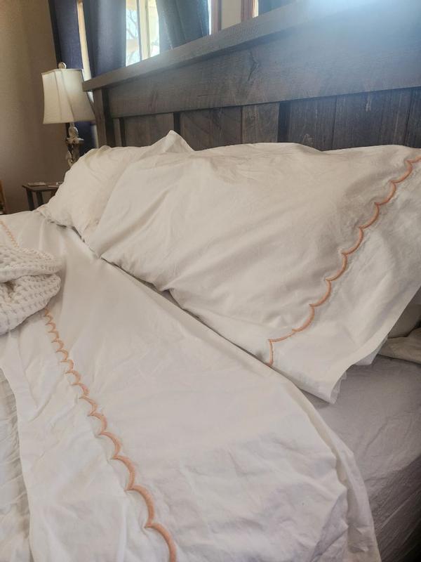 Inspired by classic bedding designs, our Company Cotton™ Embroidered Scallop Percale Sheet Set features a border of delicate curves and comes in an assortment of beautiful hues. A timeless and versatile layer for any bed, it makes an elegant statement on its own or layered with our patterned bedding designs, sold separately. Our breathable percale bedding collection is an excellent choice for year-round use and hot sleepers.