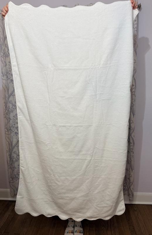 The scalloped edge bath towels are praised for their soft, plush, and velvety feel, as well as their excellent absorbency. Customers noted the towels dry them quickly without feeling rough. While a few reported issues with durability after washing, the majority of reviews were highly positive, describing the towels as high-quality and luxurious, elevating the bathroom experience.