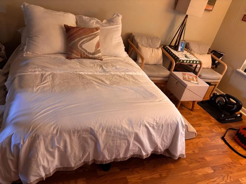 The duvet cover is described as a high-quality product that customers find soft, beautifully designed, and well-suited to complement their decor. Many praise the classic, sophisticated look and feel, likening it to a hotel-like experience. However, some customers noted issues with the size, color accuracy, and wrinkling after washing. Overall, the positive reviews outweigh the negative feedback, suggesting the duvet cover is a good choice for those seeking a luxurious and comfortable bedding upgrade.