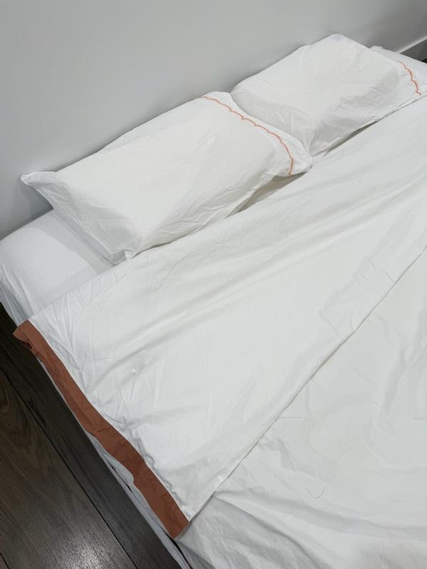 Inspired by five-star hotel bedding, this Solid Border Classic Cool Cotton Percale Duvet Cover is offered in two elegant options: a solid white ground with a contrast-colored border treatment; or a colored ground with pristine white trim.