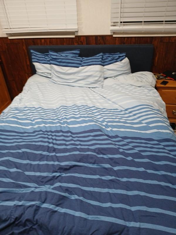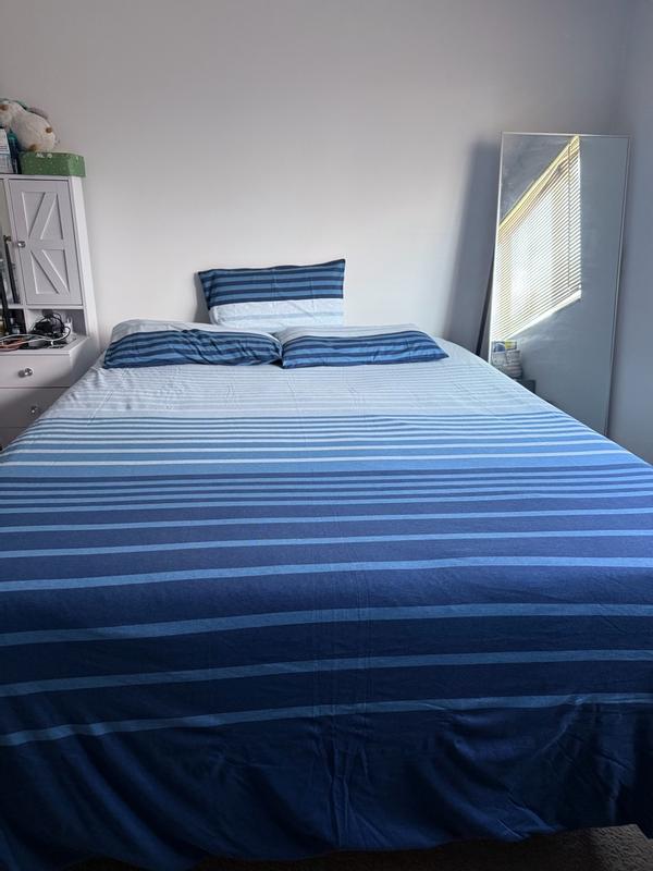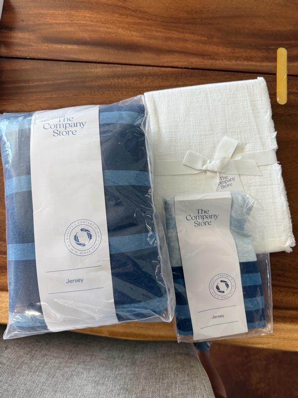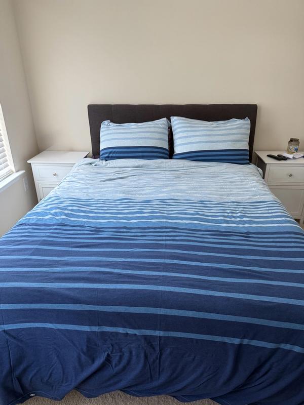 The jersey knit duvet cover set is widely praised for its exceptional softness, comfort, and quality. Customers consistently describe the material as very soft and comfortable. Many note that it is well-made and durable, holding up well through washing. The classic striped design is appreciated as stylish and versatile, with some highlighting its relaxed, clean look and nautical charm. Overall, this appears to be an excellent choice for those seeking a cozy, high-quality bedding set.