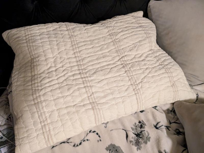 The quilted pillow sham is generally well-received for its high quality, soft and comfortable feel, and attractive design. Customers praised its durability, breathability, and versatility in matching various bedroom decor. However, some found the back ties inconvenient or unsuitable, and a few felt the sham was overpriced. Overall, the sham is considered a well-made, comfortable, and stylish addition that enhances the bed's appearance, though the back ties may be a drawback for some users.