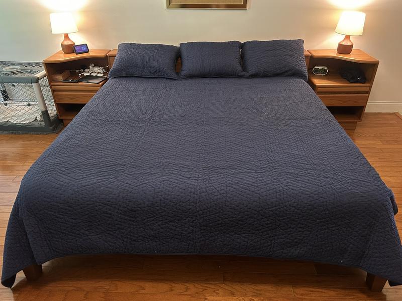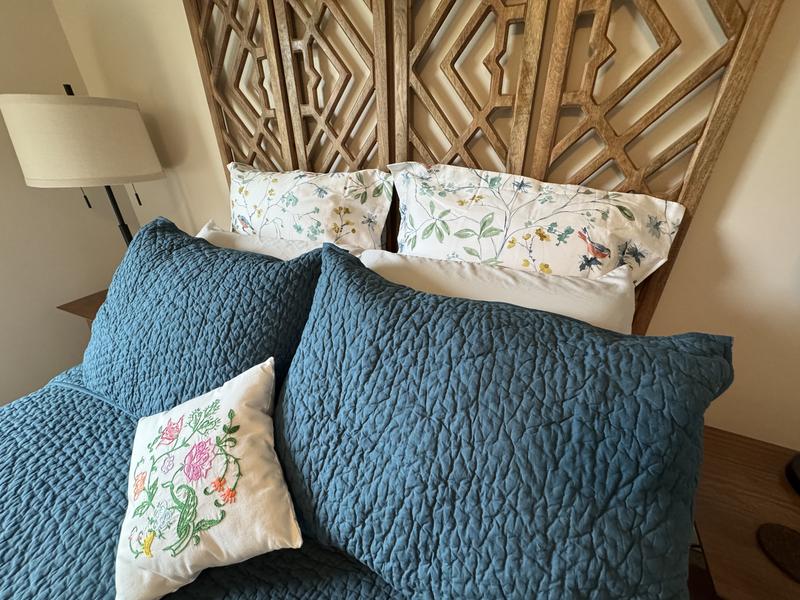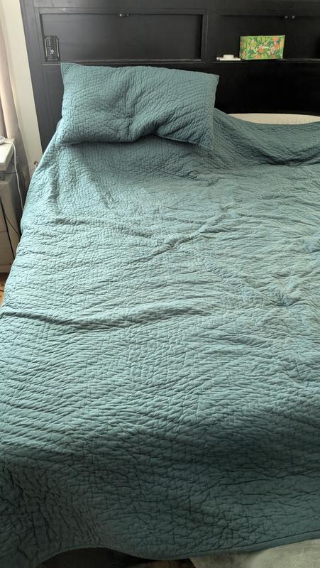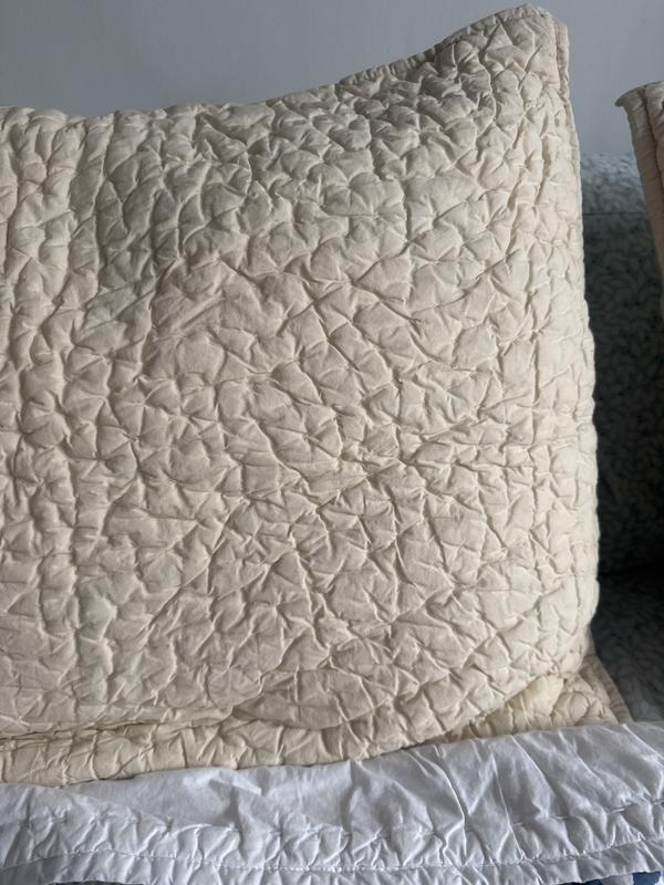 The product shams are of excellent quality, with soft and durable fabric that holds up well after washing. The color options are versatile and beautiful, with the "Pacific" and "Goldenstraw" shades being particularly popular. The shams complement the matching quilts very well, creating a cohesive and visually appealing bedding set. Customers appreciate the thoughtful design details like the tie closures on the back of the shams. Overall, the shams provide great value and are highly recommended by satisfied customers.
