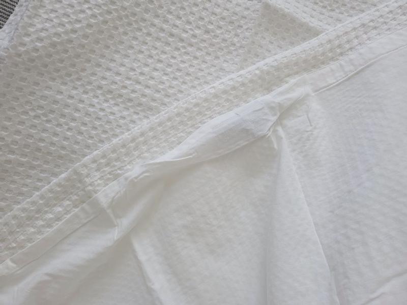 The waffle duvet cover is described as having high-quality construction and design, with a soft, lightweight, and durable fabric that creates a crisp, elegant appearance. Customers praise the beautiful and luxurious waffle texture, which provides a hotel-like feel. The easy-to-use features, such as corner ties and buttons, are also highlighted. While a few customers found the texture slightly scratchy, the majority were extremely satisfied with the sophisticated and comfortable addition to their bedding.