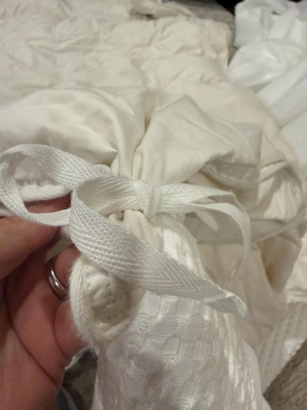 - Features four interior corner ties that attach to corner loops on our basic bedding comforters to secure both in place