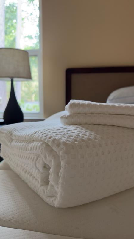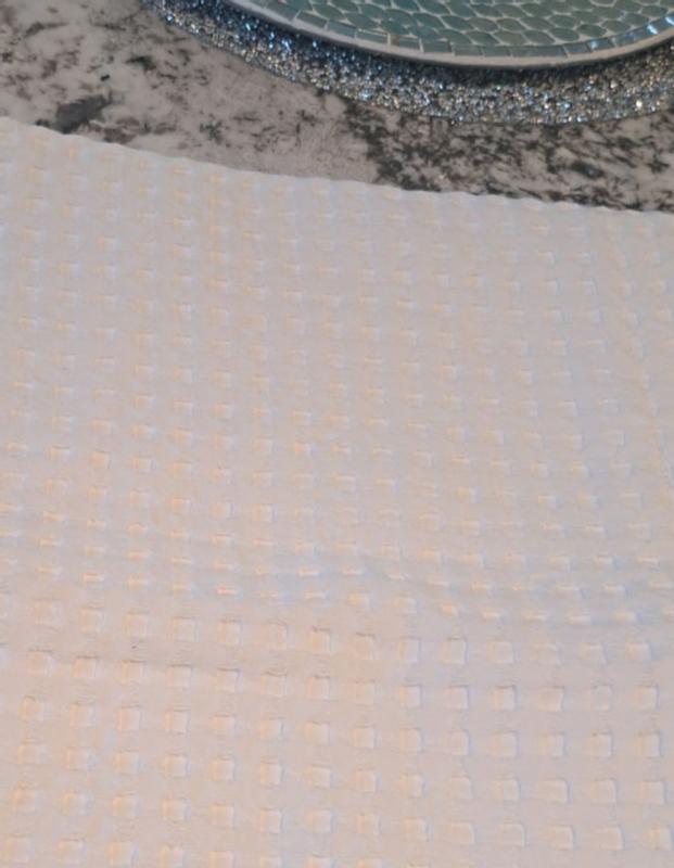 - Reverses to a non-waffle-weave, solid white backing