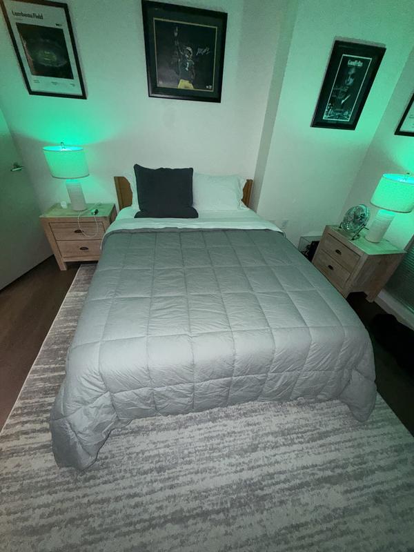 A great alternative to down with its durable construction, exceptional quality, and great value; our Company Essentials™ comforter belongs on every bed in the house (with maybe a spare in the linen closet). The rectangular box-stitching keeps the lofty synthetic fill evenly distributed for all-around coziness, and the medium weight makes this versatile layer perfect for year-round use.