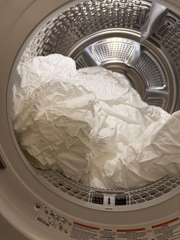 - Remove promptly from dryer and fold